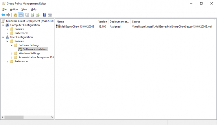 Lütfen dikkate alınız: Grup ilkelerini kullanarak yazılım yüklerken sorunları önlemek için, MailStore kullanıcılarının Windows istemcilerini temsil eden bilgisayar nesneleri için grup ilkesi aracılığıyla aşağıdaki ayarlar uygulanmalıdır: